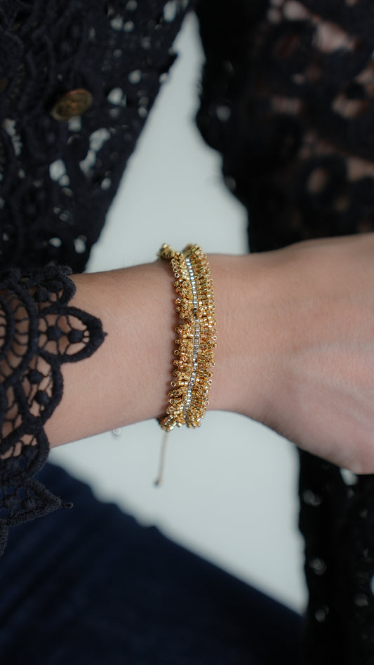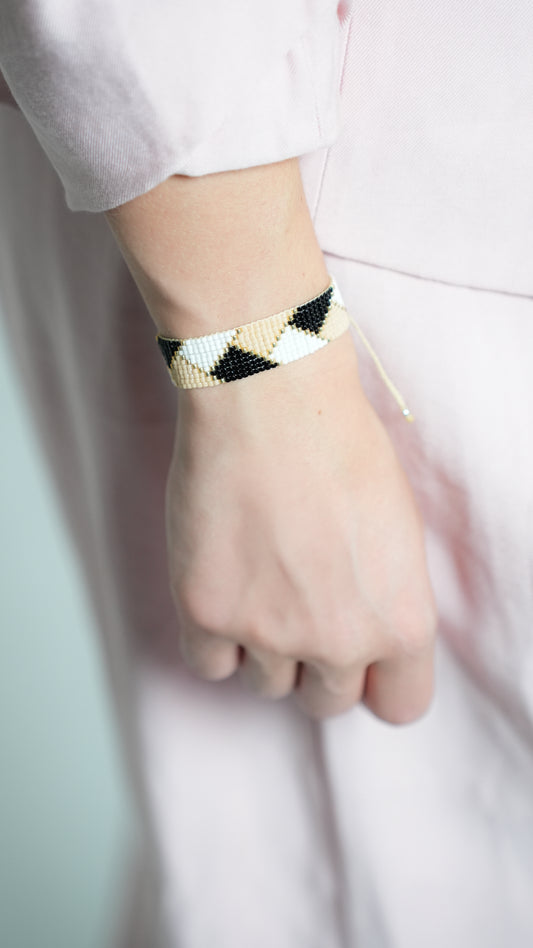 Brazalete Miyuki diagonales magenta naranja nude oro