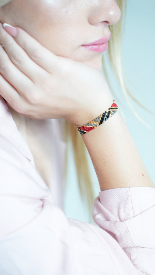 Pulsera Miyuki Caballero redonda negro centro rojo ocre