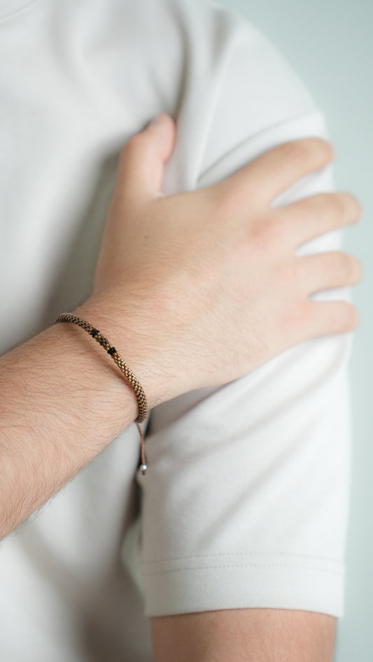 Pulsera Miyuki Caballero redonda cafe centro negro ocre