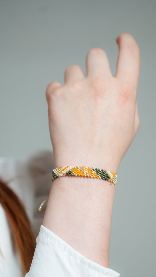 Pulsera Miyuki chica lineas gruesas camello verde beige