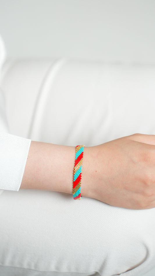 Pulsera Miyuki chica lineas oro turquesa rojo