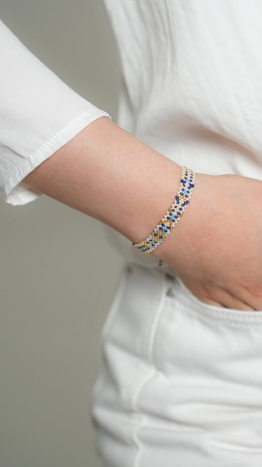 Pulsera Miyuki chica rombo azul cielo oro