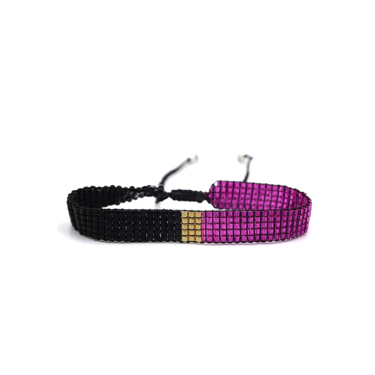 Pulsera Miyuki chica morado y negro con centro oro