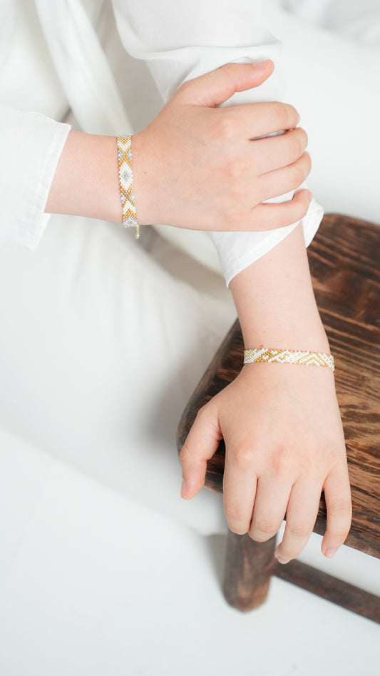Pulsera Miyuki chica rombo colores lineas beige dorado