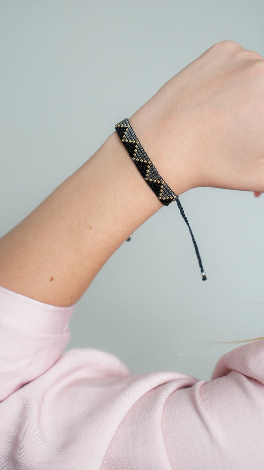 Pulsera Miyuki chica rombo negro dorado
