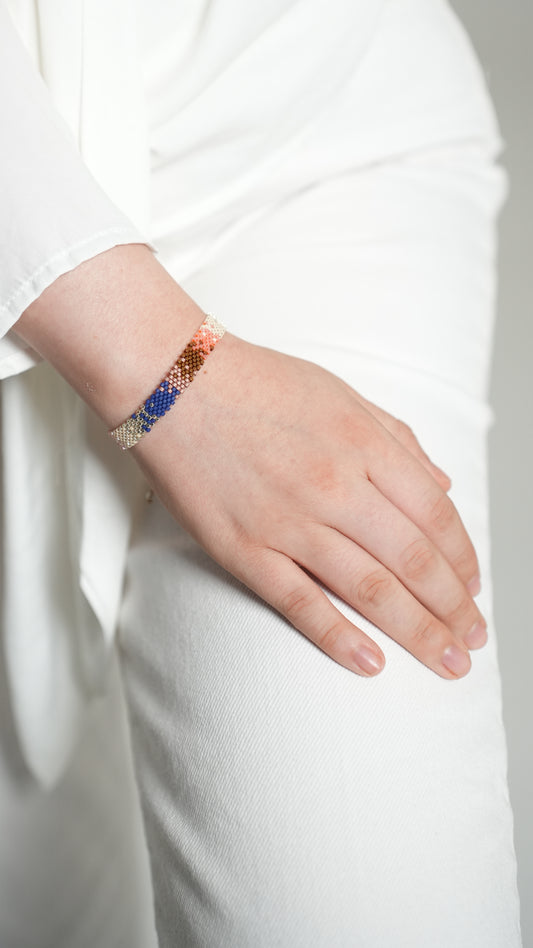 Pulsera Miyuki chica combinacion rosa azul ocre beige