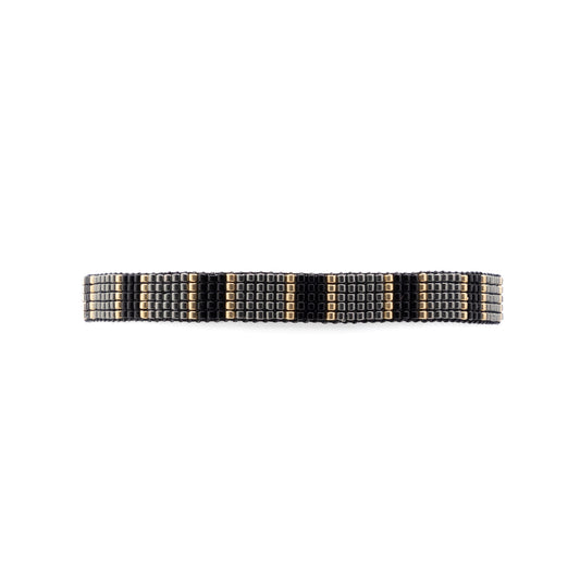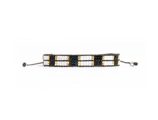 Pulsera Miyuki chica Cuadros oxford y negro con linea oro