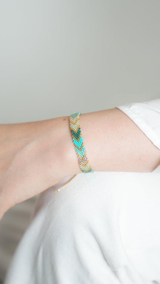 Pulsera Miyuki chica flechas verde aqua turquesa y plata