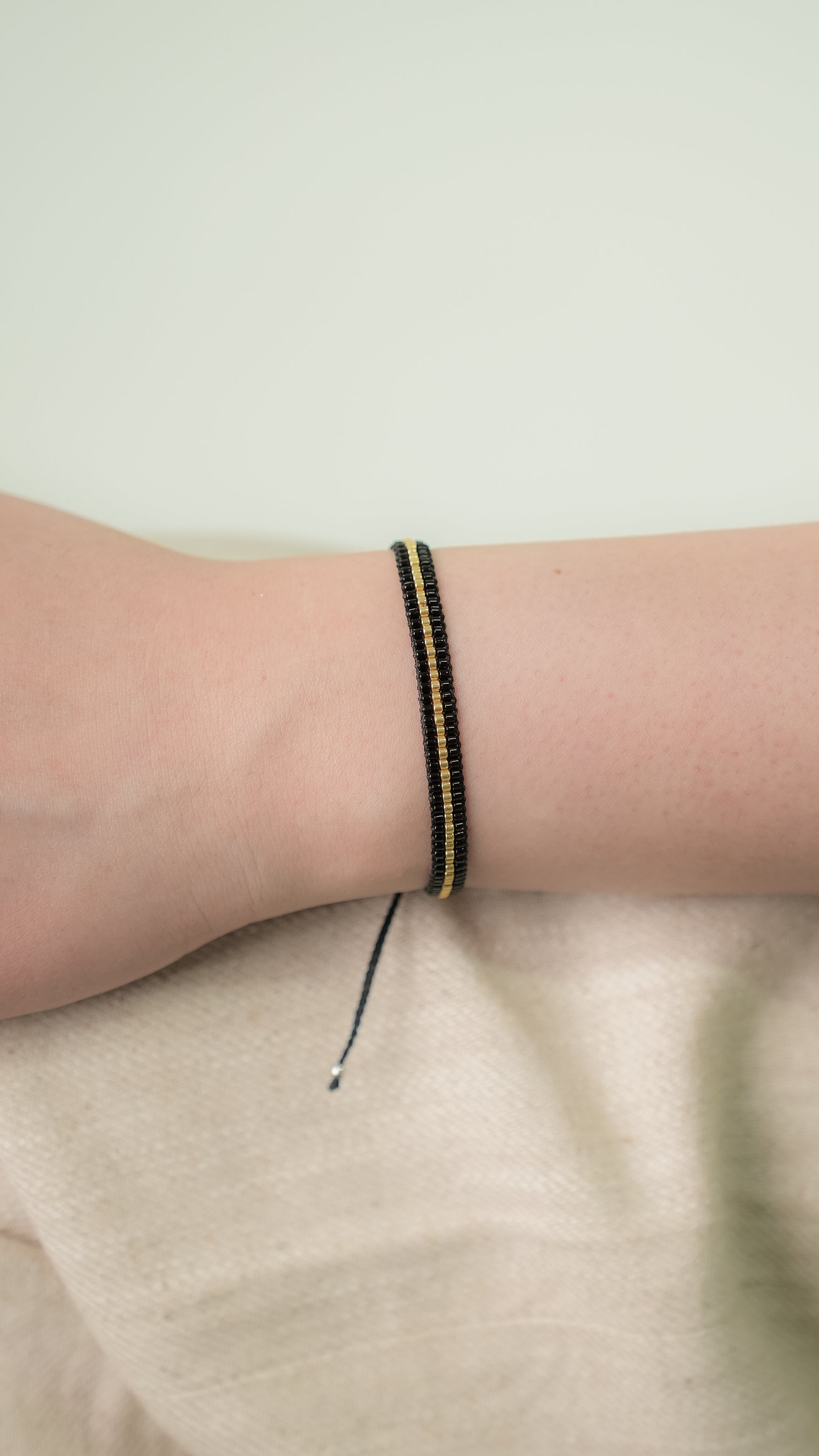 Pulsera MIYUKI 3 lineas negro centro dorado