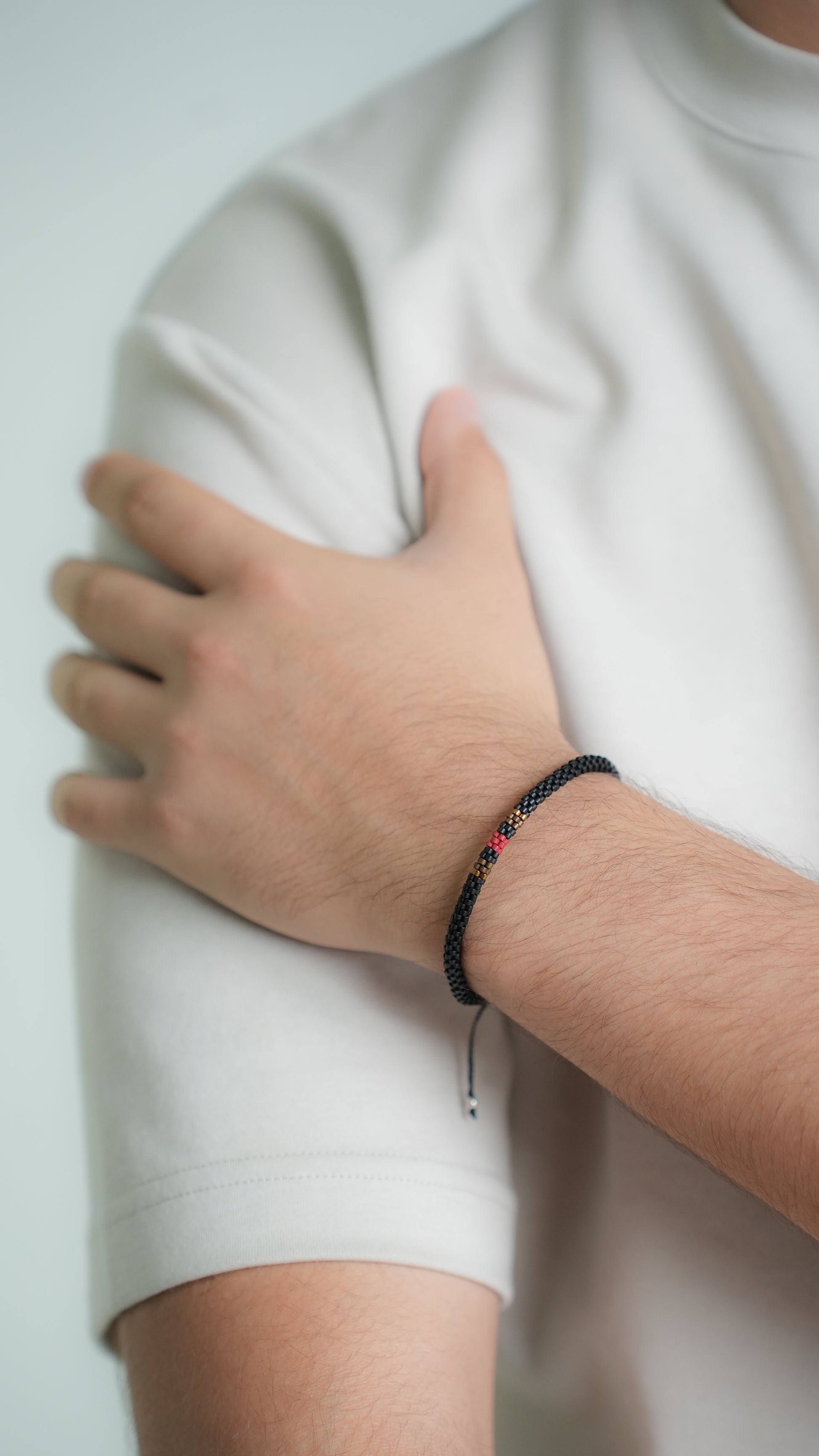Pulsera Miyuki Caballero redonda negro centro rojo ocre