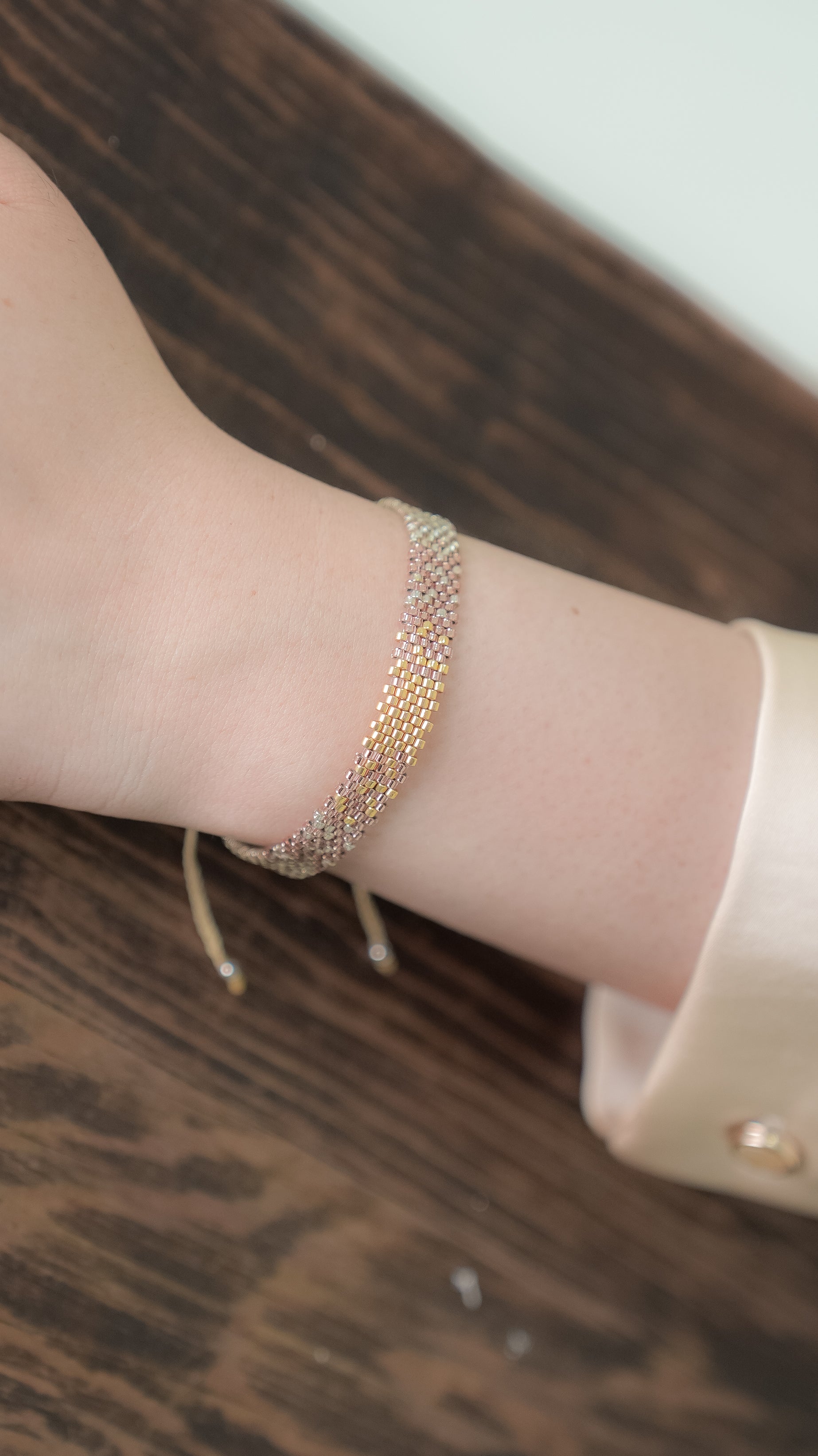 Pulsera tejido peyote 100% a mano con Cristal Japones calidad PREMIUM e hilo italiano bondeado; terminado con broche ajustable a cualquier medida de muñeca y balines en plata en las puntas.