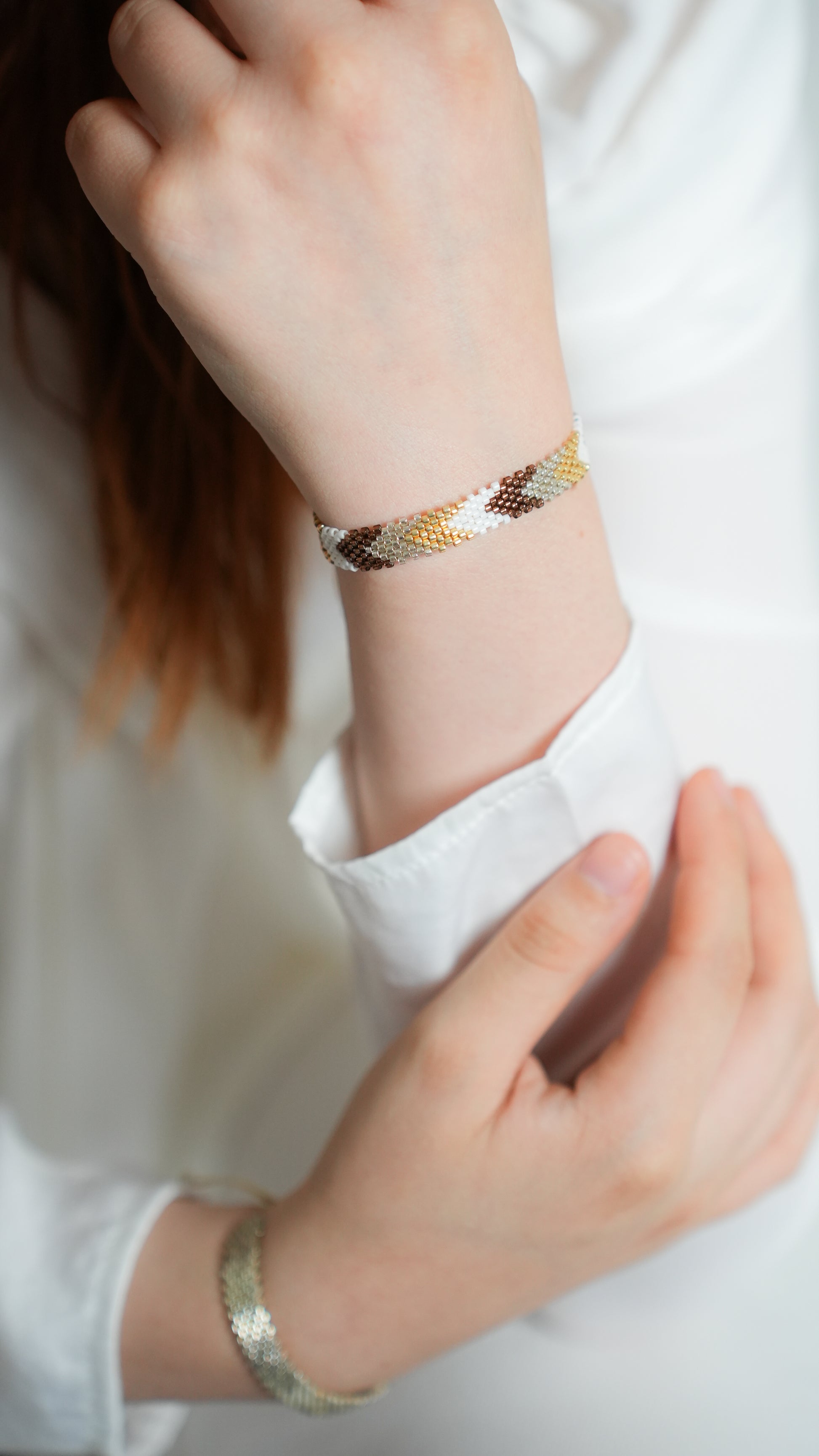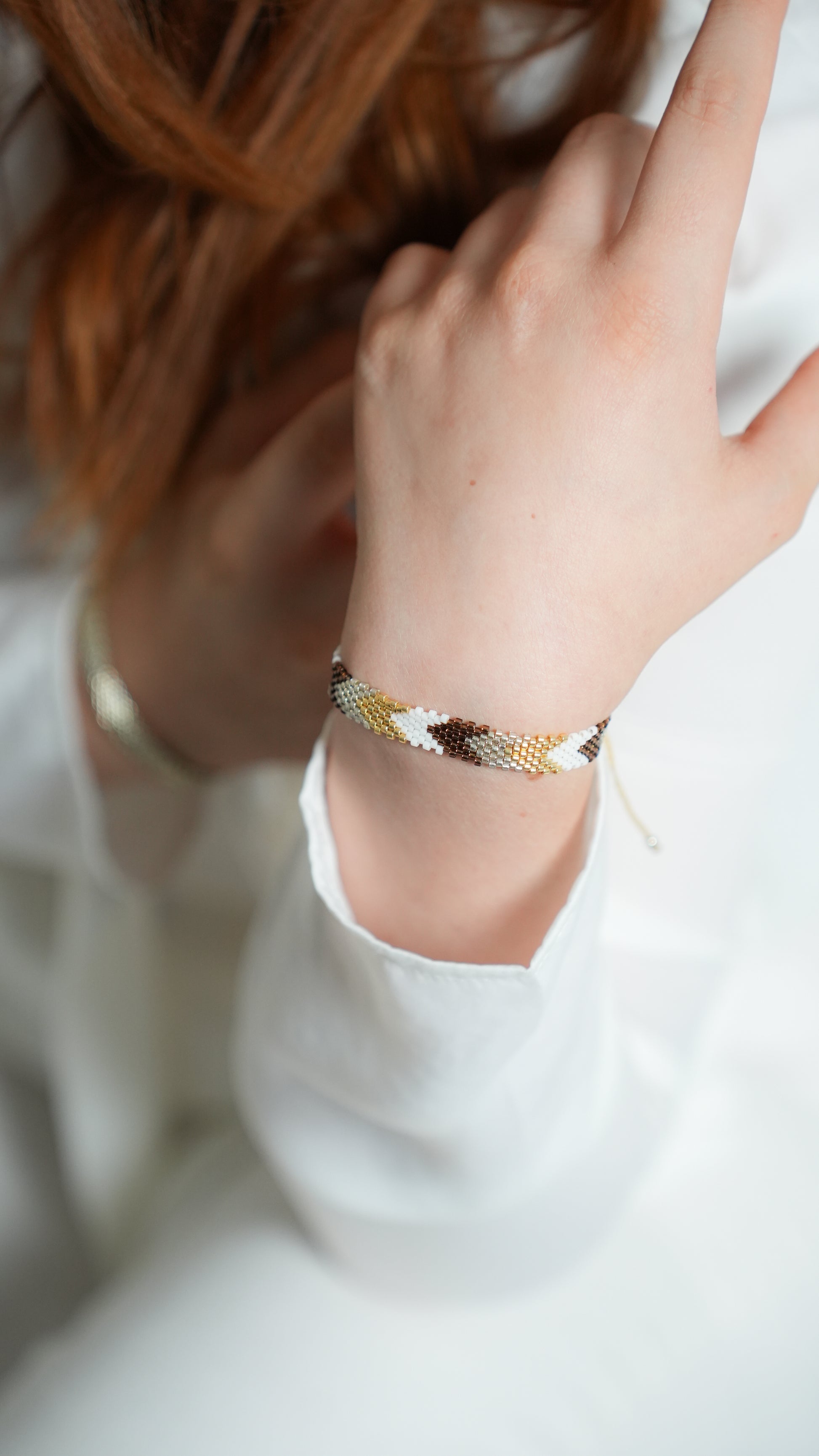 Pulsera Miyuki chica flechas ocre plata blanco oro