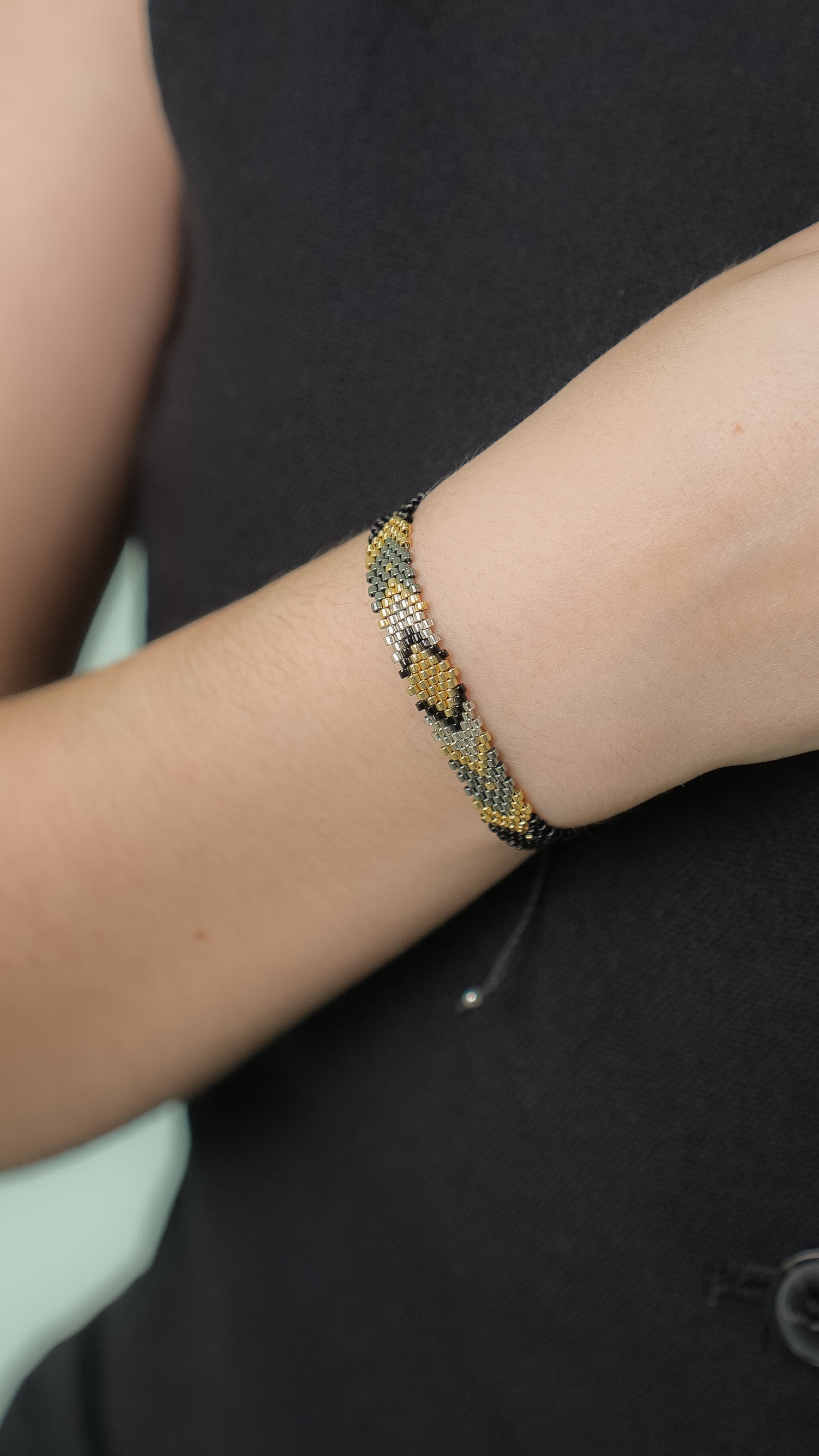 Pulsera tejido peyote 100% a mano con Cristal Japones calidad PREMIUM e hilo italiano bondeado; terminado con broche ajustable a cualquier medida de muñeca y balines en plata en las puntas.
