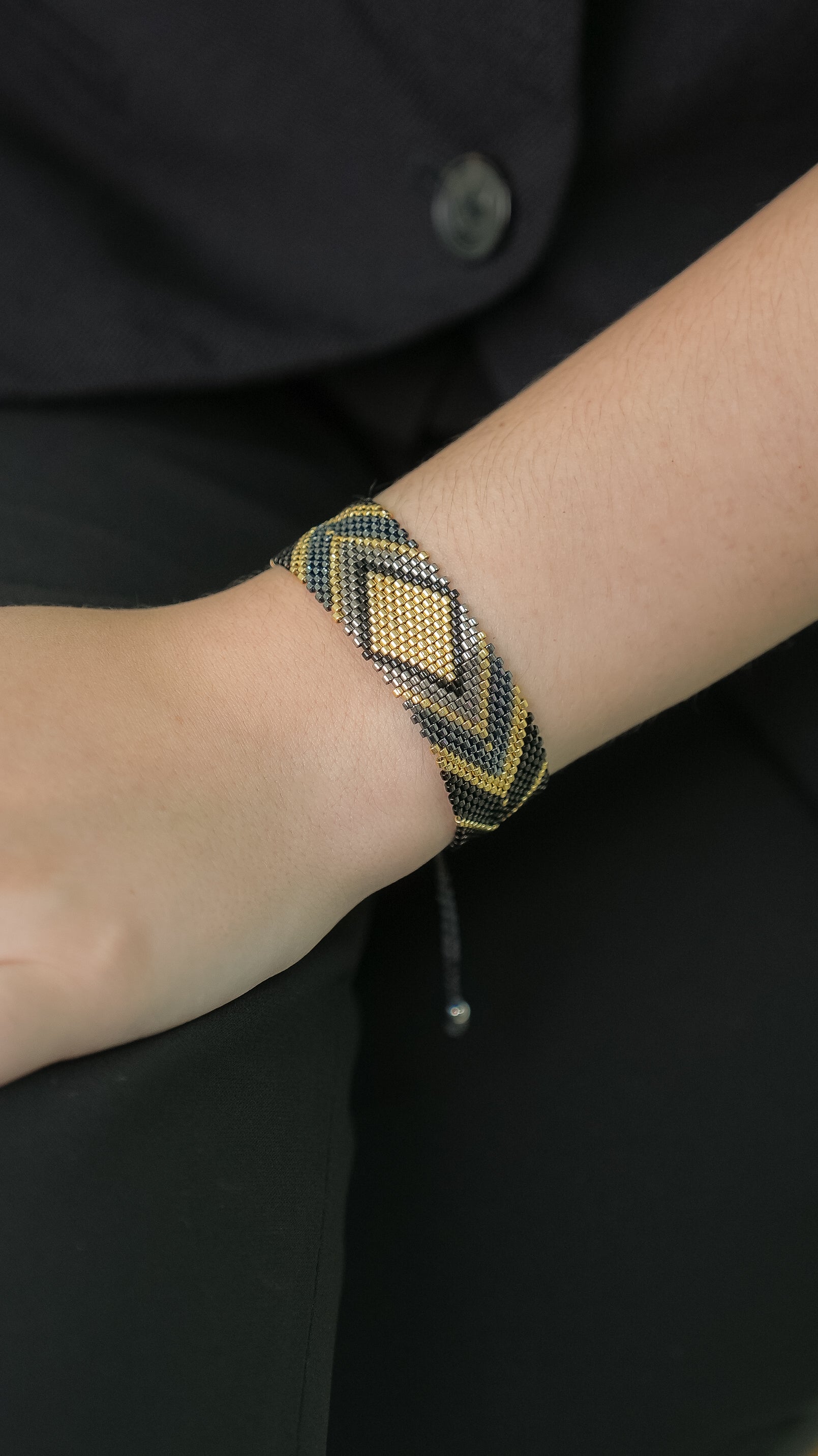 Pulsera tejido peyote 100% a mano con Cristal Japones calidad PREMIUM e hilo italiano bondeado; terminado con broche ajustable a cualquier medida de muñeca y balines en plata en las puntas.