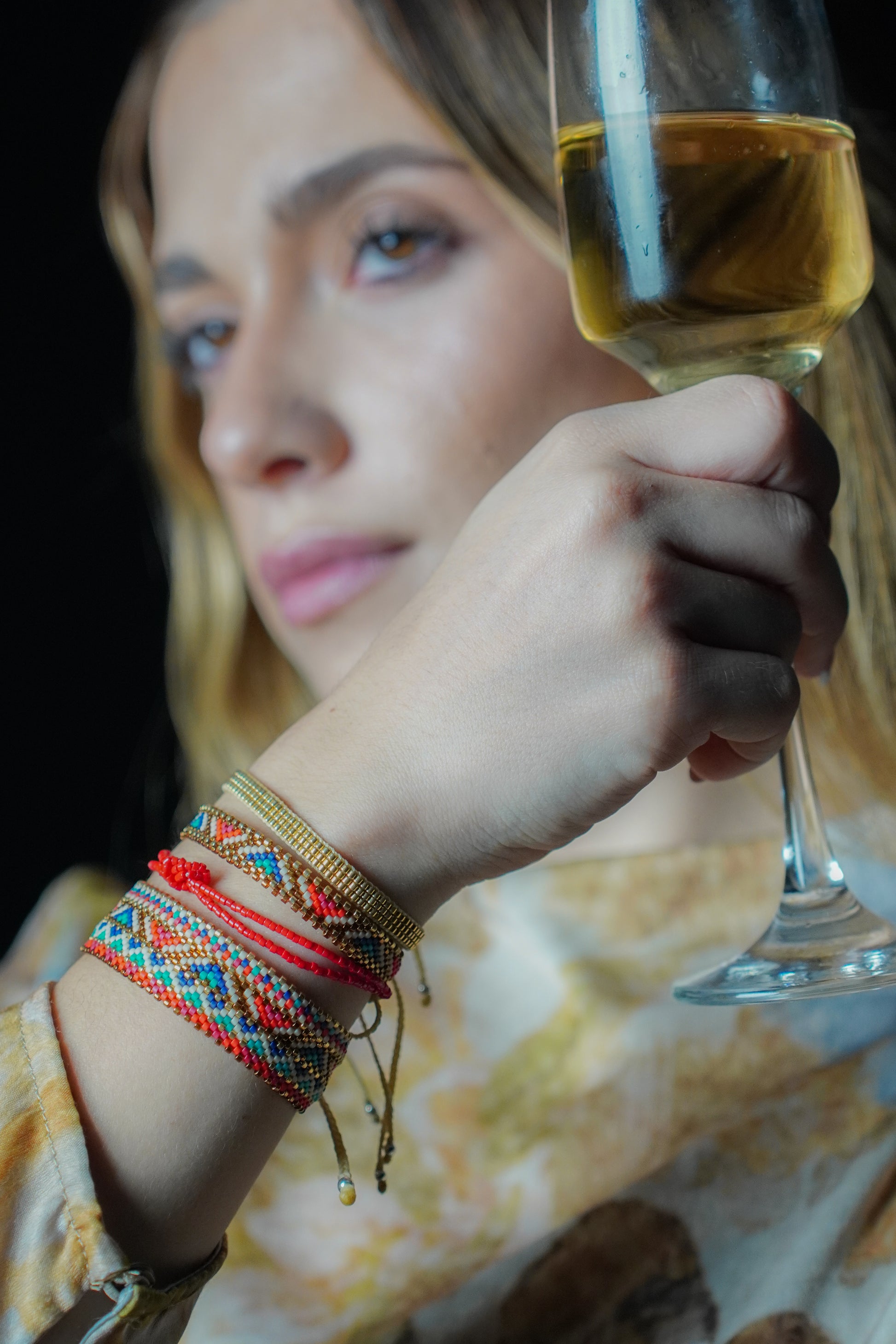 Pulseras tejidas 100% a mano con Cristal Japones calidad PREMIUM e hilo italiano bondeado; terminados con broche ajustable a cualquier medida de muñeca y balines en plata en las puntas.