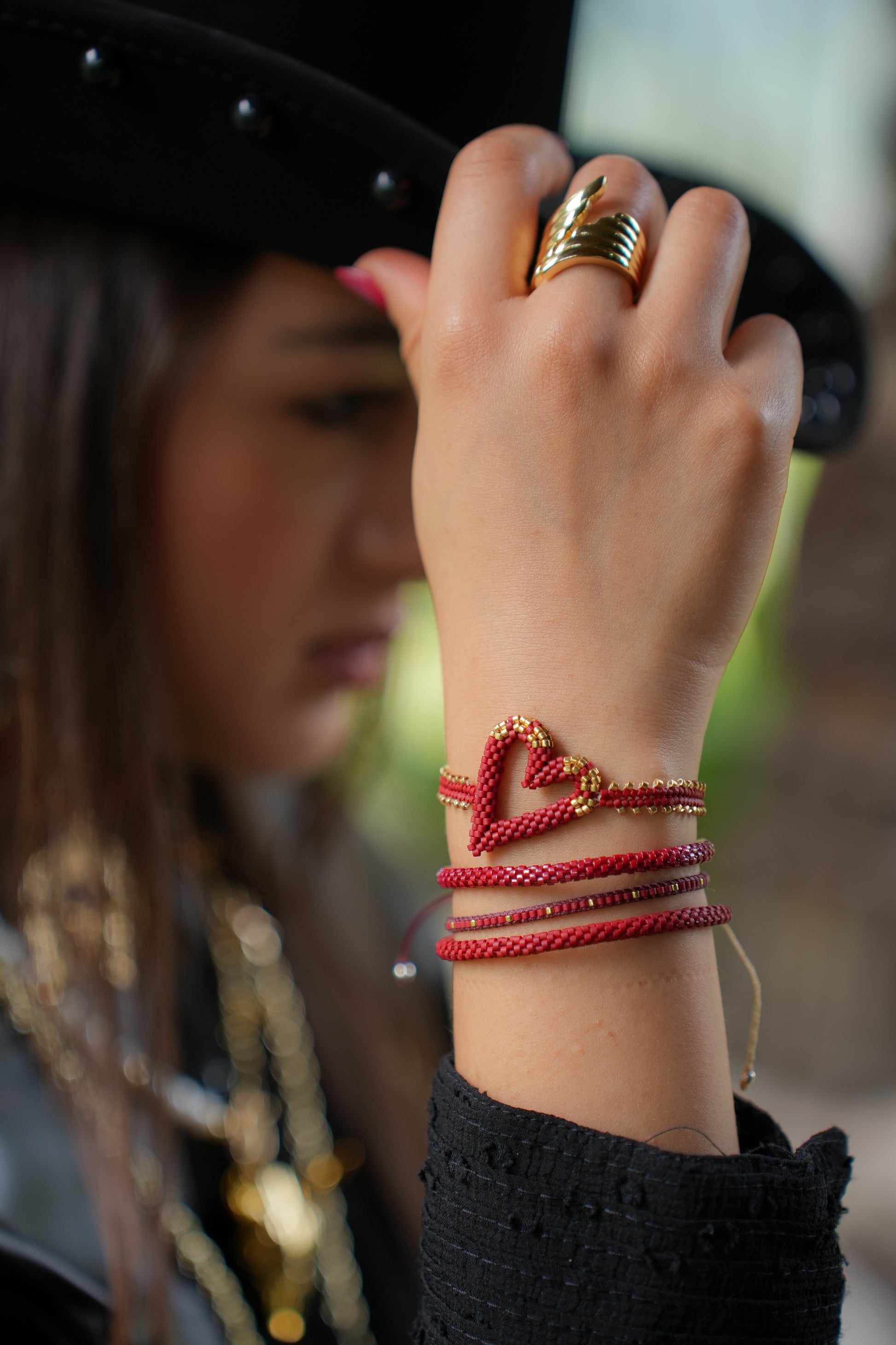 1 Pulsera Miyuki Corazón tinto oro 3D