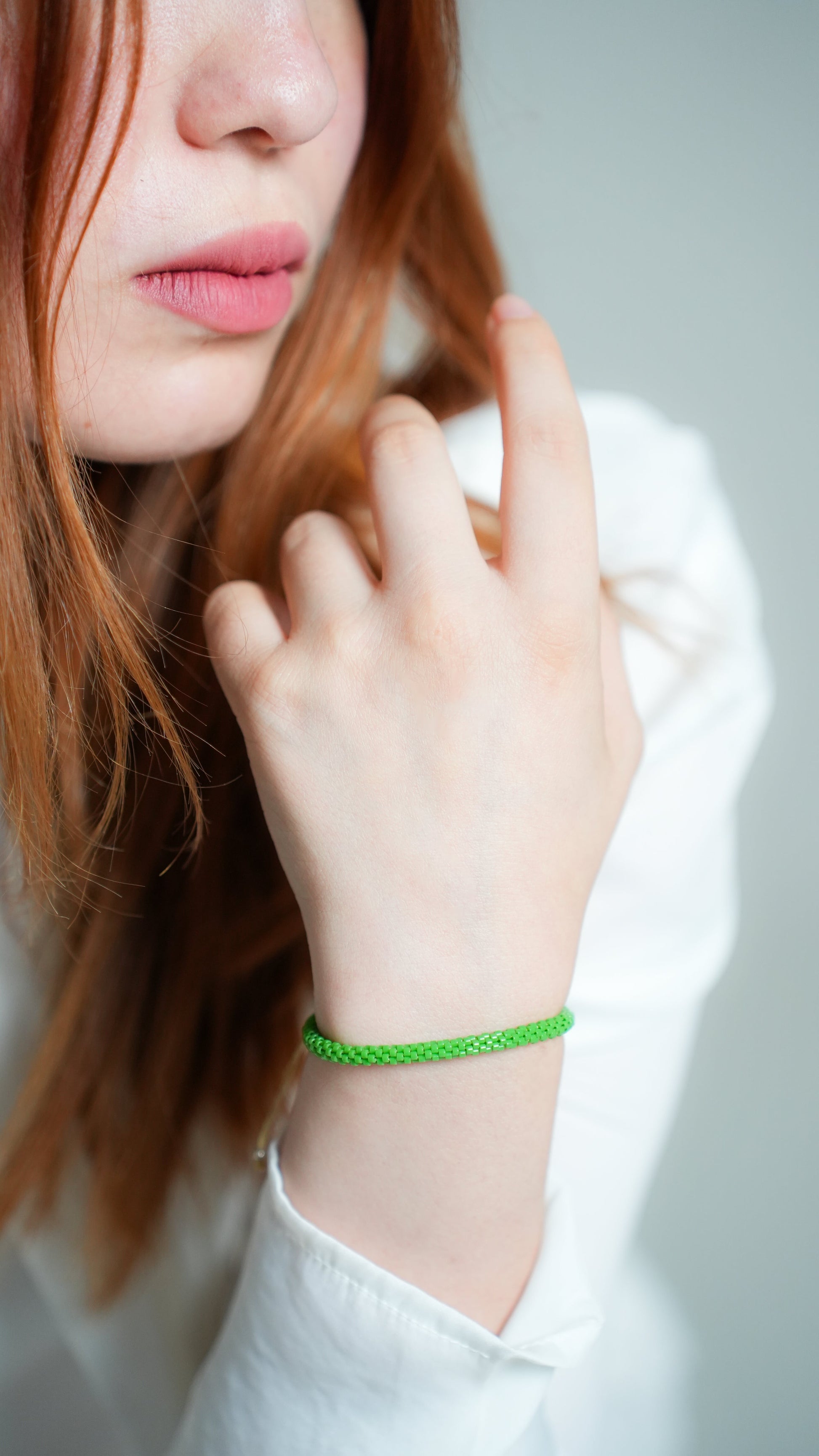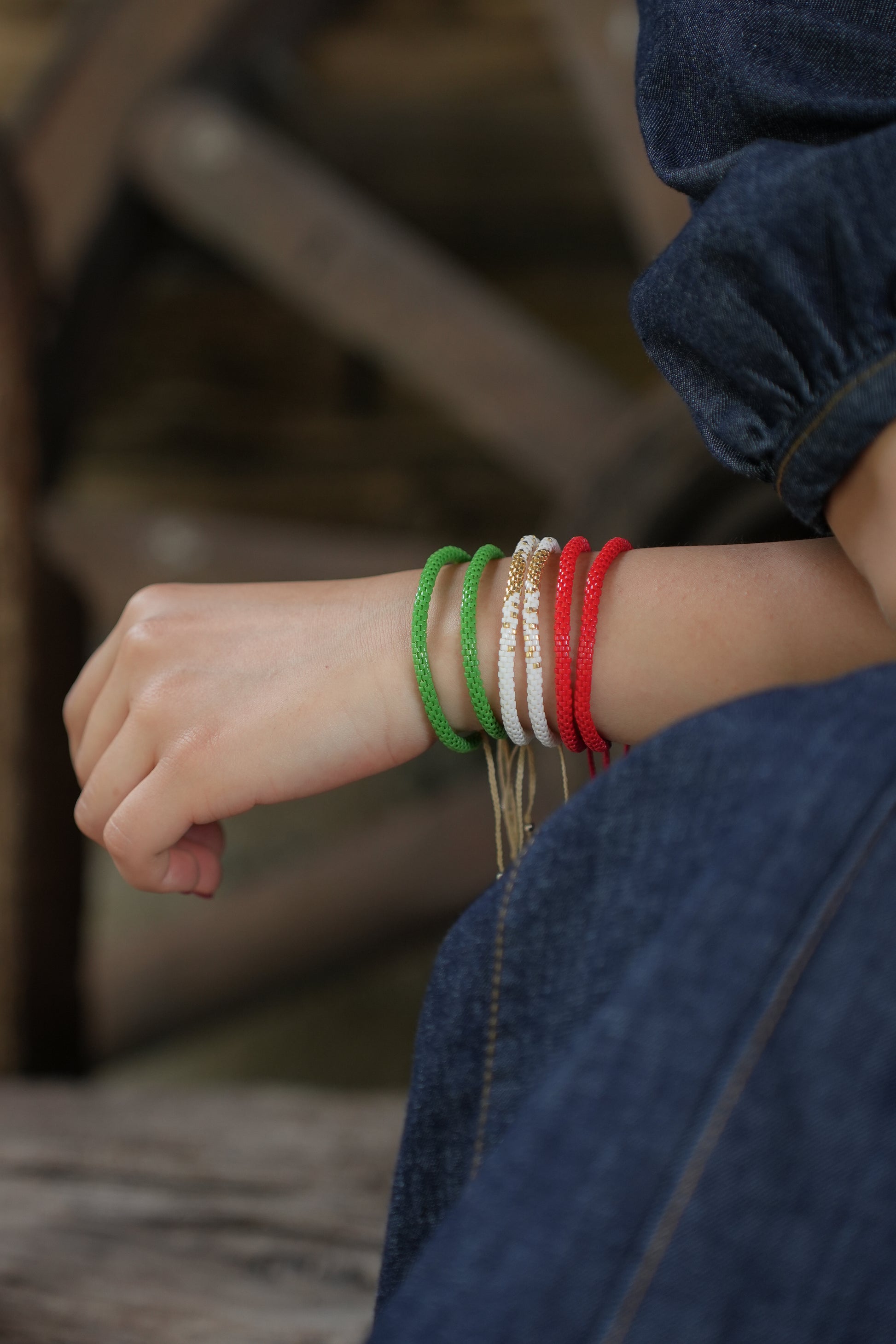 Pulseras tejidas 100% a mano con cristales japoneses de calidad PREMIUM y hilo italiano trenzado, terminadas con broche ajustable que se adapta a cualquier muñeca y balines de plata en las puntas.