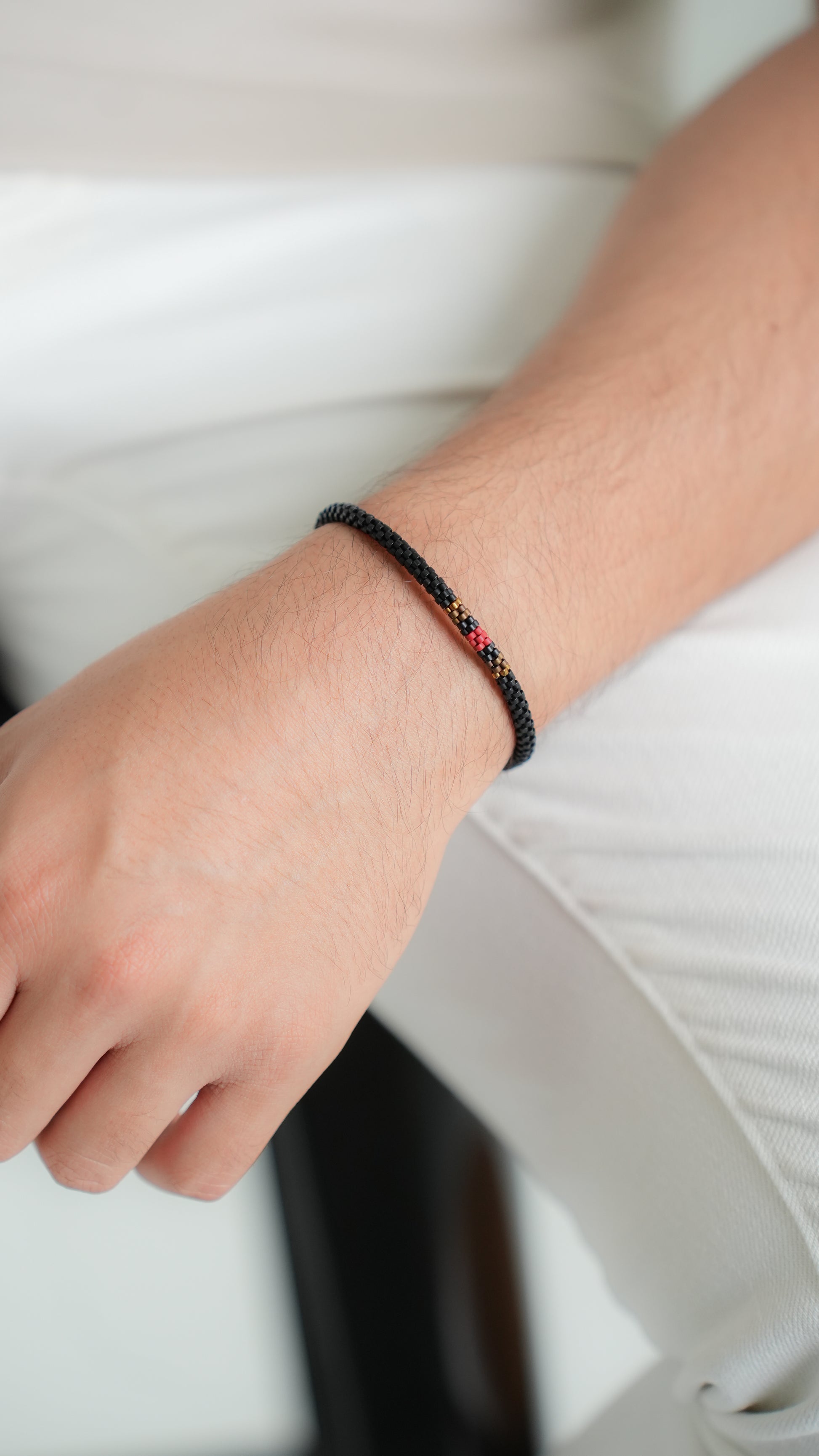 1 Pulsera Miyuki Caballero redonda negro centro ocre