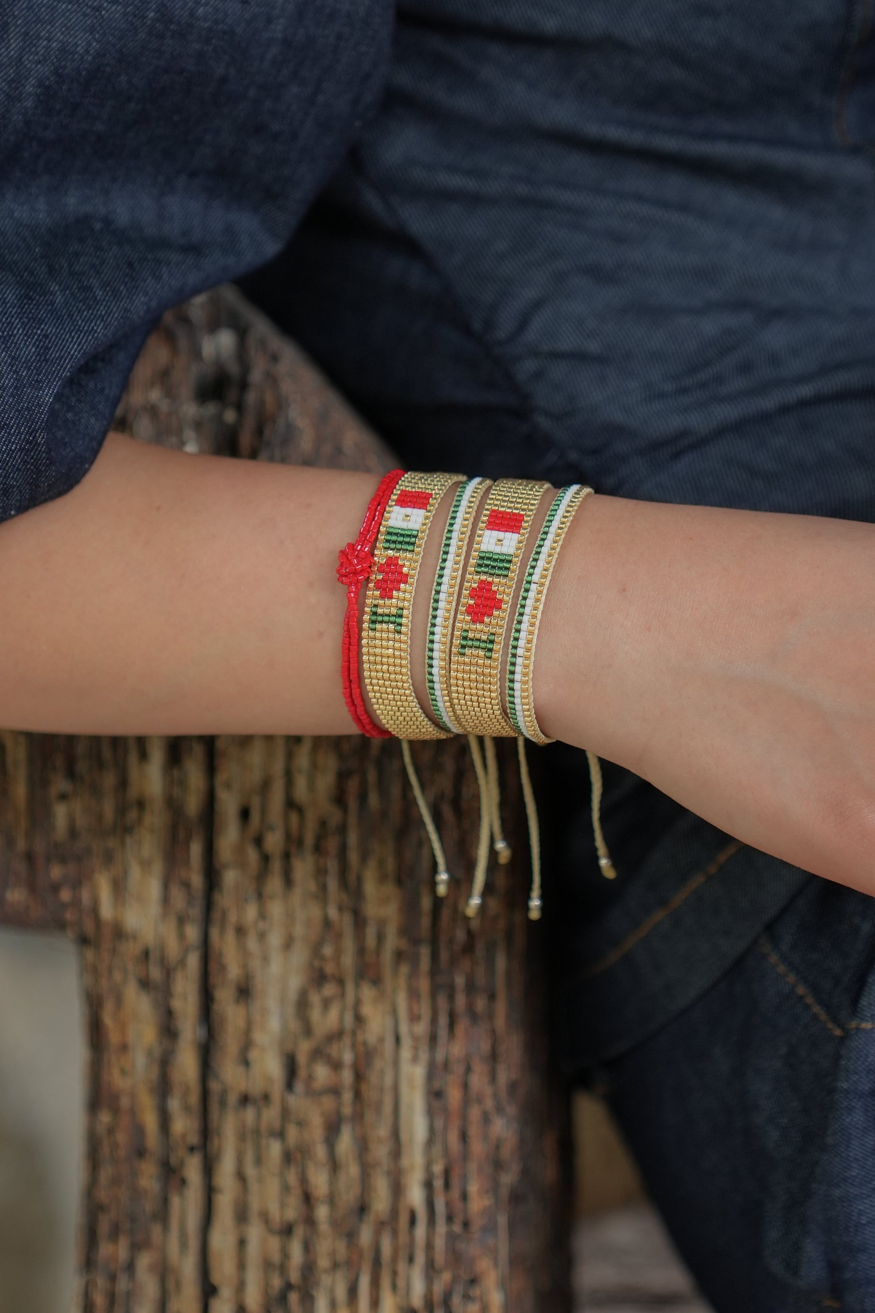 Pulseras tejidas 100% a mano con cristales japoneses de calidad PREMIUM y hilo italiano trenzado, terminadas con broche ajustable que se adapta a cualquier muñeca y balines de plata en las puntas.