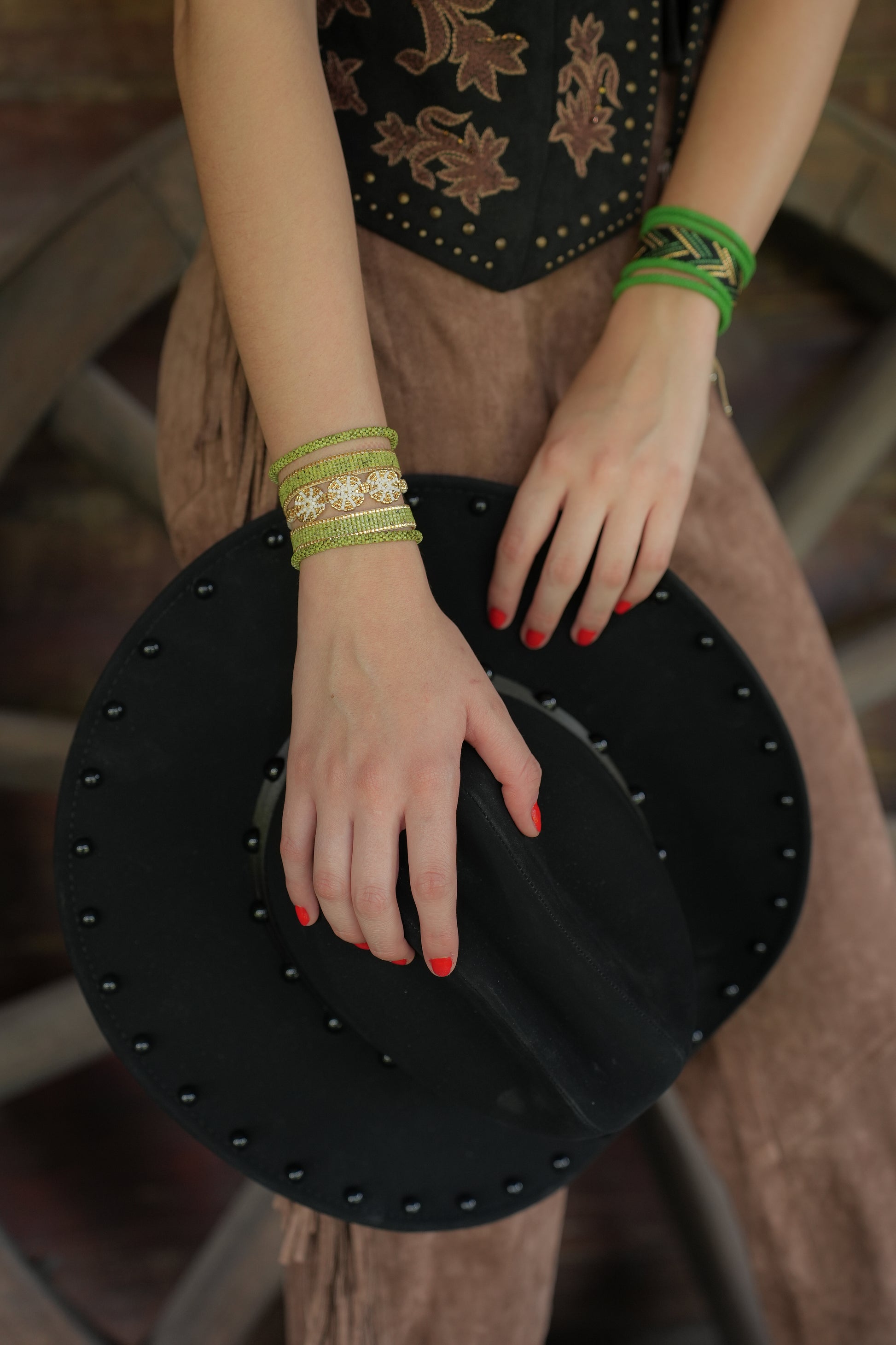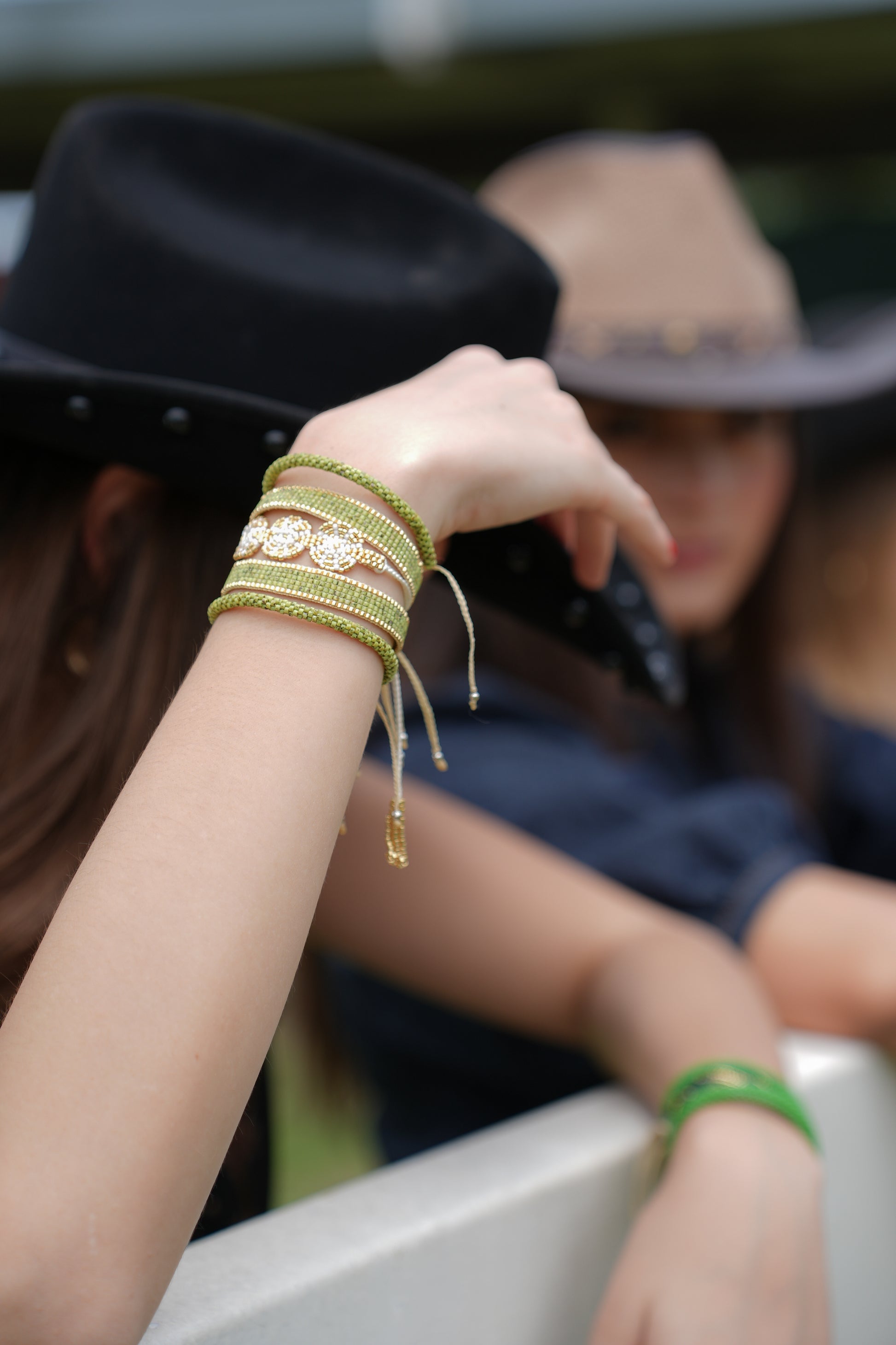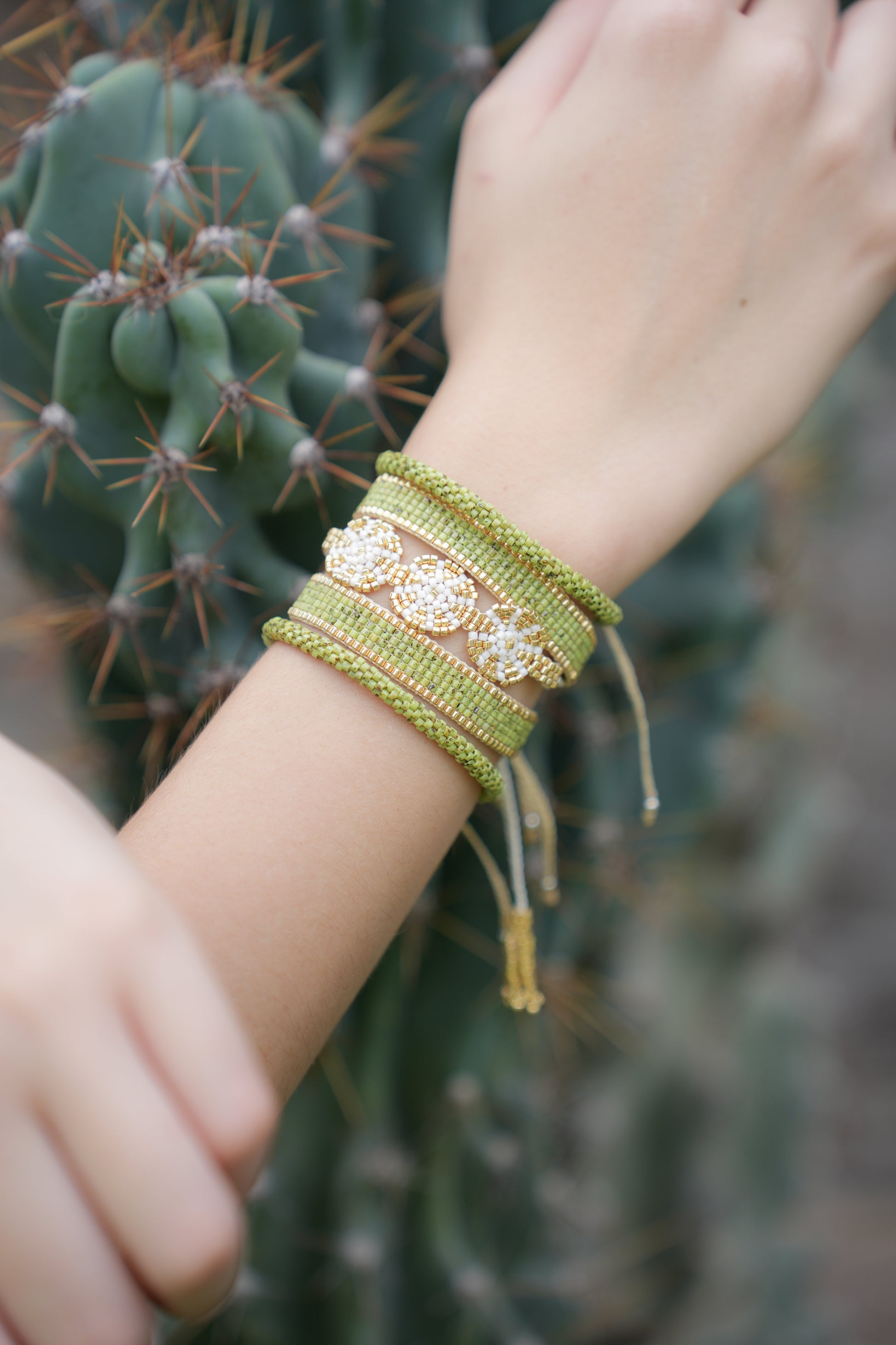 1 Pulsera Miyuki PICASSO verde línea dorada