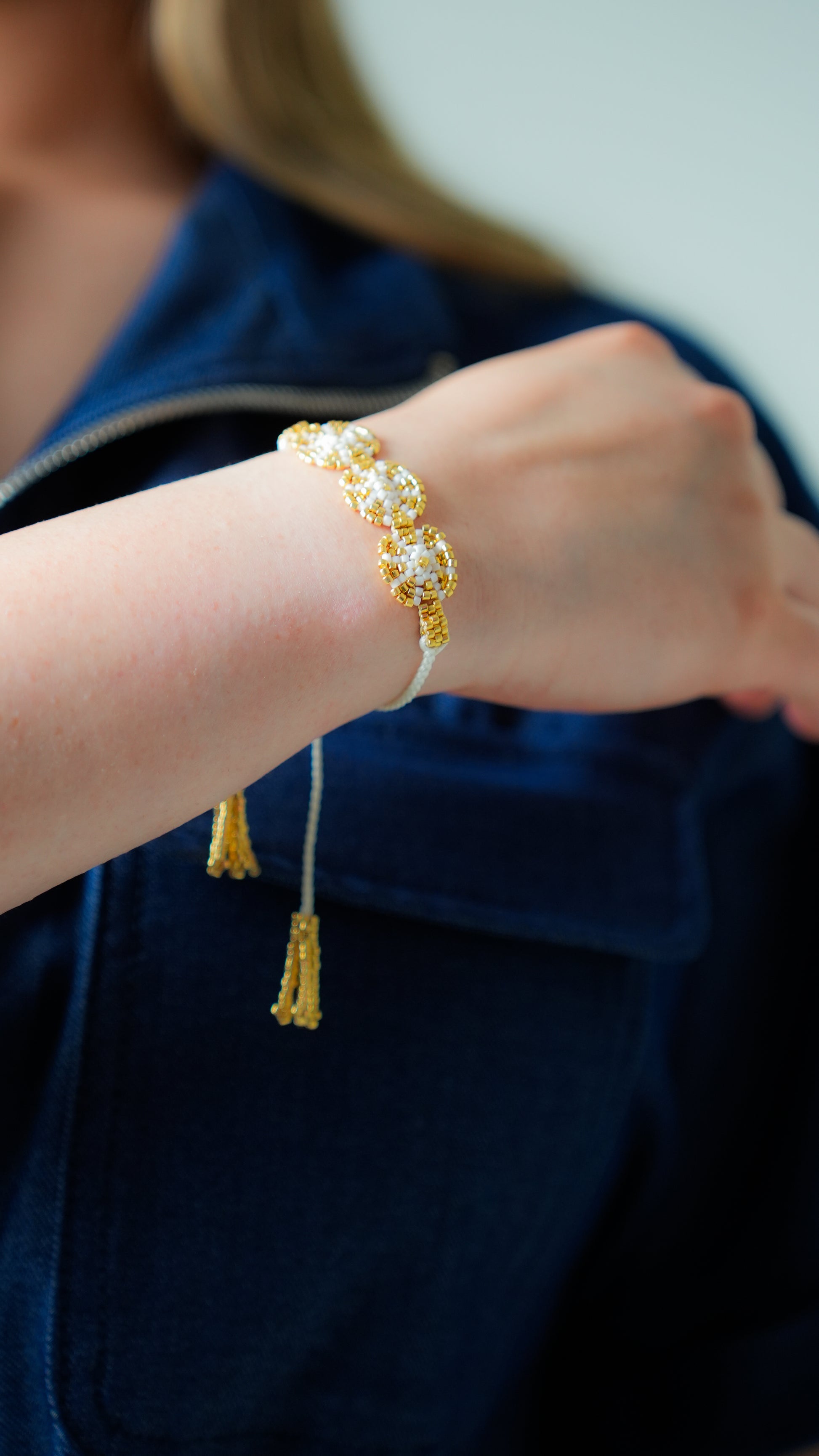 Pulseras tejidas 100% a mano con Cristal Japones calidad PREMIUM e hilo italiano bondeado; terminados con broche ajustable a cualquier medida de muñeca y balines en plata en las puntas.